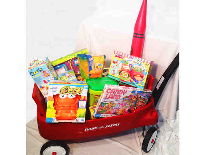 A Radio Flyer wagon stuffed full of games and fun stuff for the kids? Looks like you're ready some fun! Includes Play-Doh, Candy Land, Gator Golf, Cooties, Lego blocks, Ants in a Can, Memory, Operation, Doctor play set, sidewalk chalk, bubbles, coloring book and MORE!
