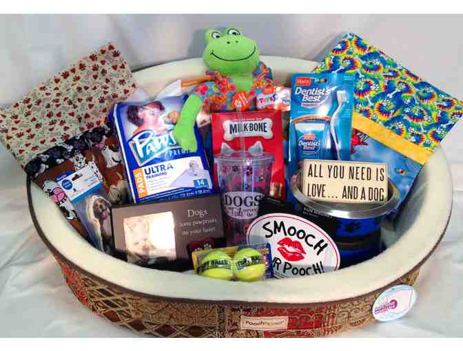 Pamper your pup with this Pooch Planet washable dog bed stuffed full of her favorites! Includes two handmade pooch approved pillow cases, treats, bowls, photo frame, toys and a $50 Pet Smart gift card for that hard to buy for pup!