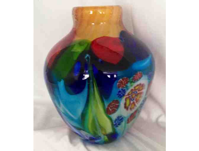 This exquisite multicolored vase will light up any home! The gorgeous colors and smooth texture are perfect for indoors or out.