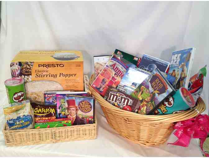 Enjoy a great night in with the family with these two amazing baskets of family favorites!! Settle in for a night of movie, there are lots to choose from: Ice Age 2, Casper, Rob Roy, Annie, Willy Wonka, A Turtles Tale, Thumbelina, Black Beauty, Beauty & The Beast, Call of the Wild, Hercules, Christmas Angel, Rookie of the Year, Easy Virtue, and Call of the Wild 2. once everyone decides on a movie, plug in the Presto Electric Popcorn Popper and add the popcorn or just open up the candy and other snacks.