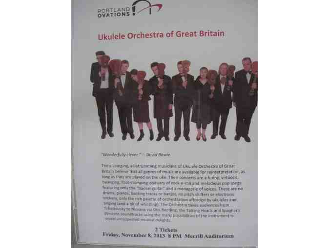 Ukulele Orchestra of Great Britain . . You are in for a treat when you attend this concert! This is an all-singing, all-strumming group of British musicians, playing ukuleles only and repertoire ranging from Tchaikovsky to Nirvana. You have 2 best available 'A-price' tickets for Friday, November 8, 2013 at 8 PM at Merrill Auditorium, Portland. Redeem your voucher at the box office at Merrill Auditorium. Donated By: Portland Ovations