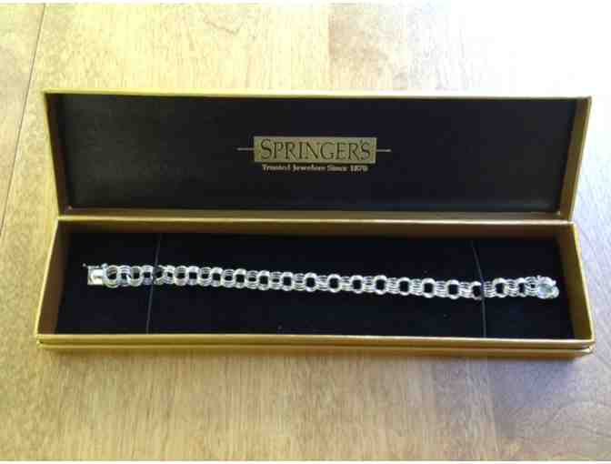'Charming' Bracelet . . . lovely Sterling Silver Triple Link Charm Bracelet. Wouldn't this be a wonderful gift to yourself, daughter or grand-daughter! Surprise a loved one with this lovely piece of jewelry offered by Springer's Jewelers. Donated by Mary and Hugh Smith