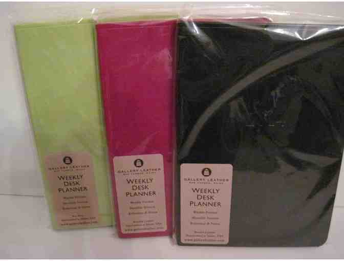 Weekly Desk Planner is designed with two pages per week format, and with all the reference details one could want. There are ample notes and reference sections as well. Choose your color: Key Westgreen, Acadia red and Acadia green. Indicate next to your bid number the color you would like. Donated By: Geoff & Anne LaFond Gallery Leather Company