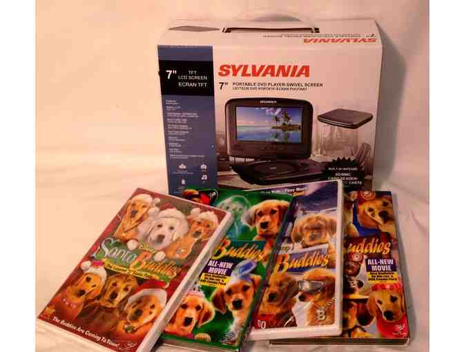 Take the show on the road or just set it up in a quiet corner of the living room! This portable 7" Sylvania DVD player works anywhere with a rechargable battery or electrical plug. Sit down and enjoy the show with the kids with these adorable puppy DVD's including Santa Buddies, Snow Buddies, Treasure Buddies, and Spooky Buddies.