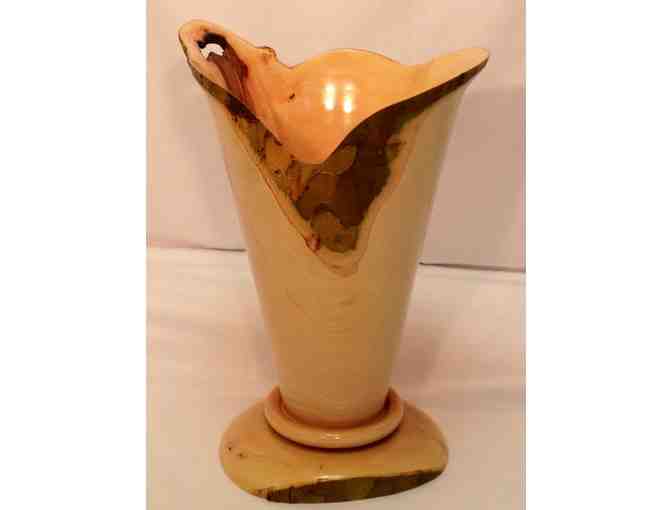 This beautiful Sycamore vase was hand-turned on a lathe by local artist Don Baier.