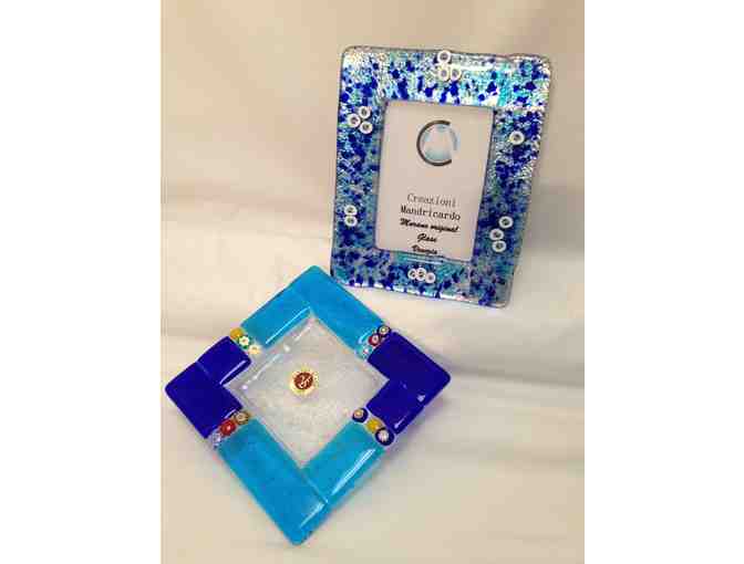 Murano Glass photo frame and Murano Glass square dish from Venezie, (Venice) Italy.