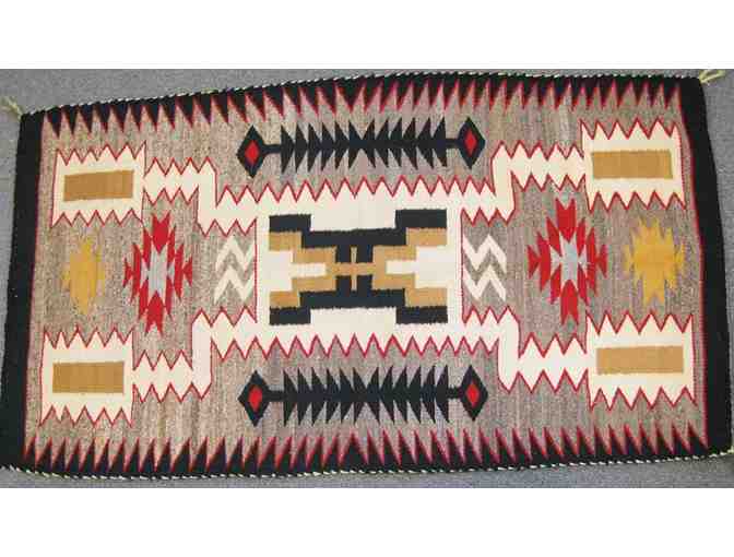Beautiful Navajo storm pattern rug or wall hanging, 58x32". Made of home-spun wool, circa 1970.