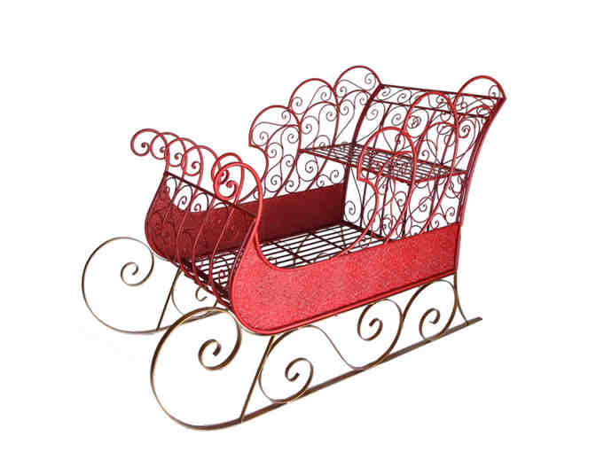 This beautiful red and gold metal sleigh will become a family favorite decoration during the holiday season! Fill it with lots of presents in your foryer, a live tree in the front yard or even pose the grand kids in it for a family photo! Add this 69", easily assembled, RAZ exclusive item to your holiday collection today!