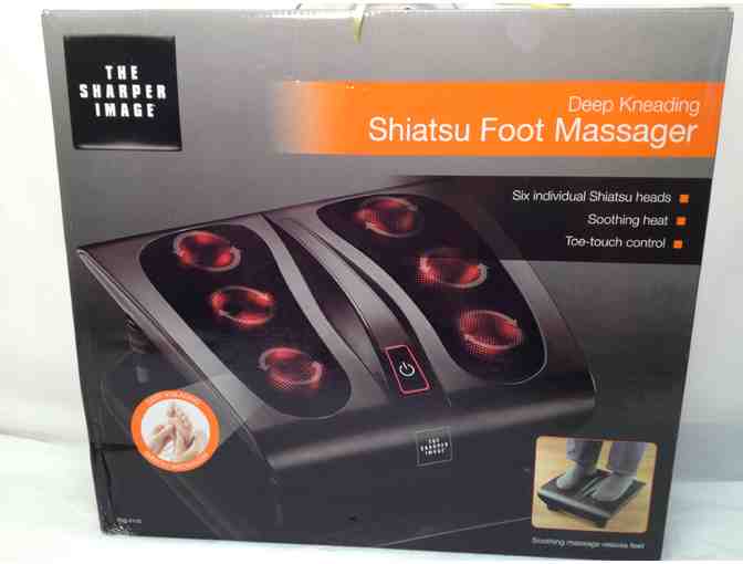 Feel refreshed with a relaxing Shiatsu foot massage. The Sharper Image deep kneading Shiatsu foot massager allows you to enjoy a relaxing heated foot massage. Designed to combine the ancient Asian principles of Shiatsu and stimulating the acupressure points in your feet. Starting with the counter-rotational massage action that offers true "thumb action," Massage rollers provide deep kneading to revive your feet, while the massager's ridged grooves help you to position your feet to optimize your treatment. With a touch of the "toe-touch" controls, you can add soothing, infra-red heat to your treatment for the ultimate in comfort.