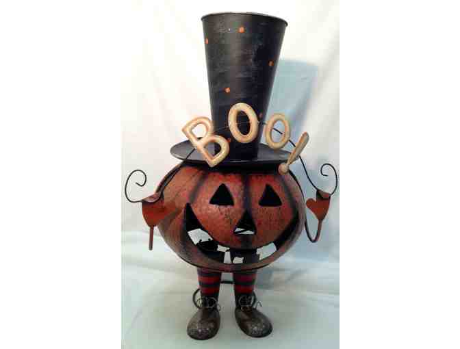 Who wouldn't want a 28" metal Jack O' Lantern rocking and bobbing on your porch or mantel? This guy wears a top hat and sits on springy legs that bounce when you push it. Way to go, Jack!