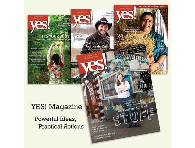 Get a full year of award-winning, solutions-oriented YES! Magazine, and learn how people are stepping up to the difficult environmental, economic, and social challenges of our time. In each ad-free issue of YES! Magazine you'll find ideas, inspiration, and practical stories about people creating positive change for a just and sustainable world.