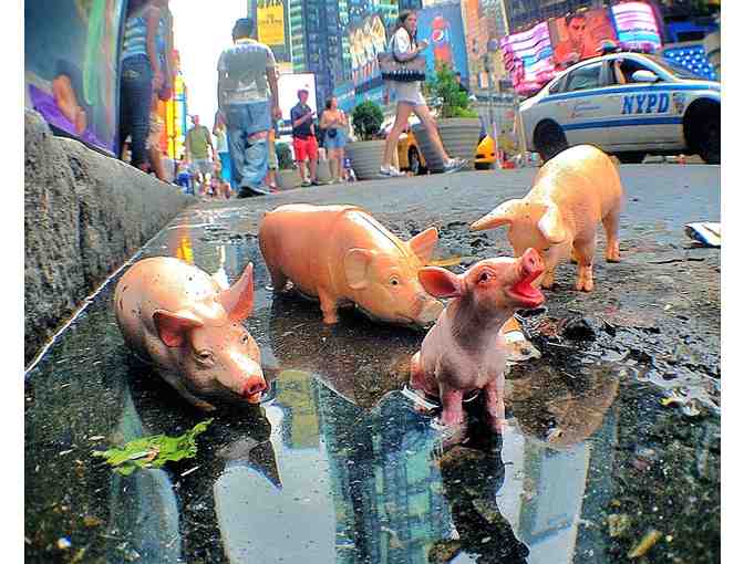 This one of a kind photo was taken in Times Square, NYC with my daughter's plastic farm animals.