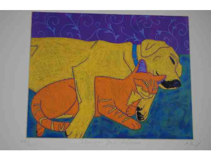 Angela Bond's unusual painting style attracts pet lovers from age 5 to 95. As she started painting her own cats and dogs, she often got requests for specific breeds and her business grew from there. Angela explores the personalities and presence of variuos dogs and cats using acrylic paints and acrylic mediums on canvas.