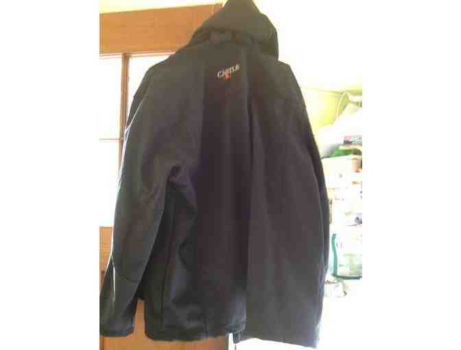 Are you a fan of the TV show Castle? Then you must have this black rain jacket with the logo for the show embroidered on it. Size - extra large.