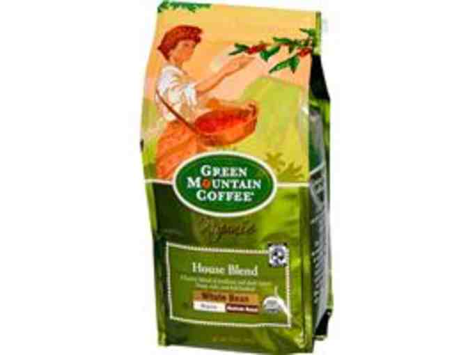 Coffee Lover's gift basket, including 6 bags of Green Mountain Fair Trade Organic coffee.