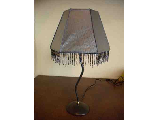 Brighten up any room in the house with this one-of-a-kind handmade lamp. This unique light fixture features a paper shade with beaded detail, combining functionality and art!