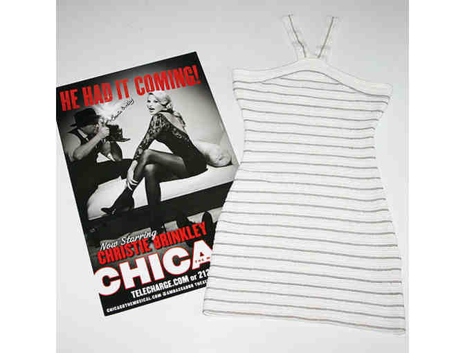 White and silver Valentino dress, worn by Christie Brinkley during her 2011 appearance on THE WENDY WILLIAMS SHOW and a CHICAGO poster, signed by Ms. Brinkley.