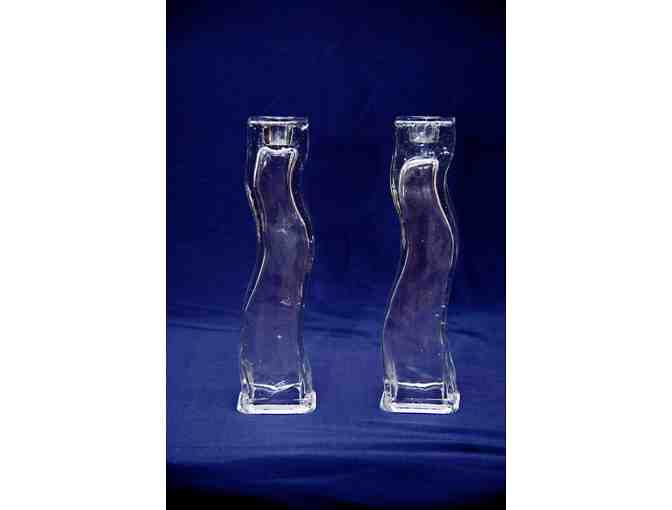 Handblown glass candlelights, 9 inches tall. These are perfect for any contemporary home and will add a touch of elegance when entertaining or a soft glow for some personal down time.