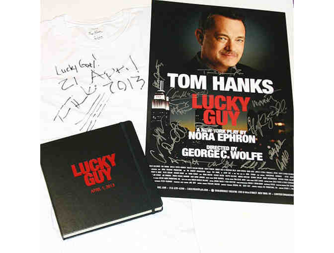 - A LUCKY GUY opening night gift of a leather-bound journal and pen set, autographed by the entire company and presented in its original book-shaped gift box