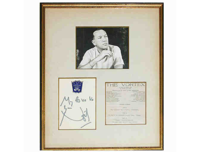 Sir Noël Coward wrote and starred in THE VORTEX at the Henry Miller's Theatre from 1925-1926. This package includes a photograph of the actor/playwright, cast list and an autographed note card.