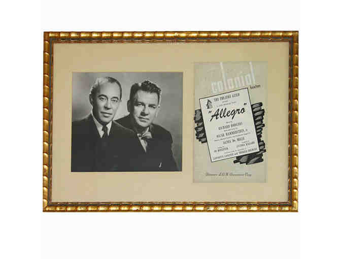 ALLEGRO was the third stage collaboration for Rodgers & Hammerstein. After a disastrous tryout in New Haven, a reworked production moved to Boston before eventually opening at the Majestic Theatre in 1947. This framed item includes an autographed program from the Boston run and a promotional photo of one of Broadway's best and most accomplished writing teams.