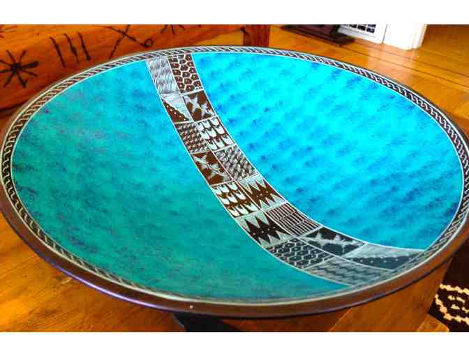 The bowl measures 16 inches in diameter and is approximately 3.5 inches deep. Due to the fragility of this item, this piece is only available for pick-up in Boston.