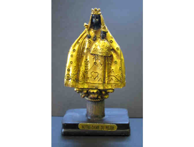 A beautiful replica of the one of the world's most famous Black Madonnas: Notre Dame Du Pilier in Chartres Cathedral, France. Measuring 3.75" high, this gold-painted wood carving comes all the way from Chartres, France, ready to perfectly adorn your home or altar with a taste of Chartres.