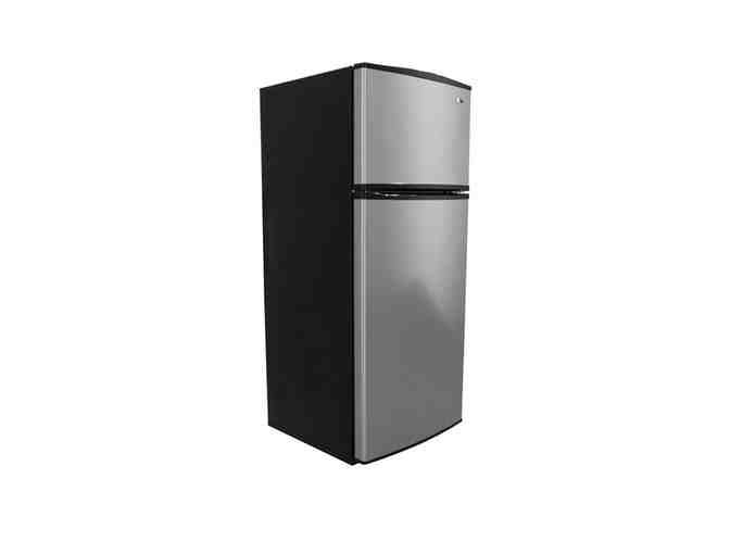 Looking for a new refrigerator? This is a 17.6 cu.ft. top-freezer refrigerator w/optional ice makerin stainless steel. Spillsaver glass shelves, up-front temperature control system, garden fresh crispers, contoured reversible-swing doors, deli drawer and dairy center.