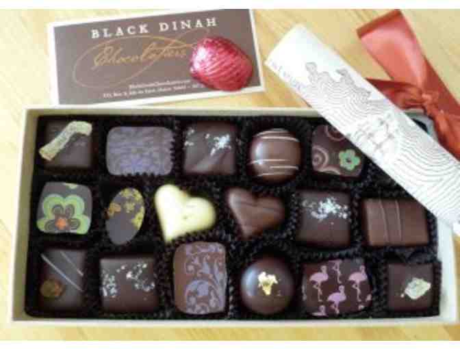 Savor this 18 piece Farm Market Collection. Each truffle in this collection features an ingredient grown on a Hancock or Knox County farm, right here in Maine. Milk and dark chocolate covered truffles hand crafted in Maine on Isle Au Haut by Black Dinah Chocolatiers, Kate and Steve Shaffer '93.
