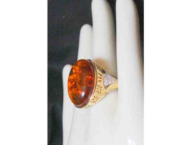 1 BEAUTIFUL! HUGE! AMBER DIAMOND RING IN 14 KT YELLOW GOLD!