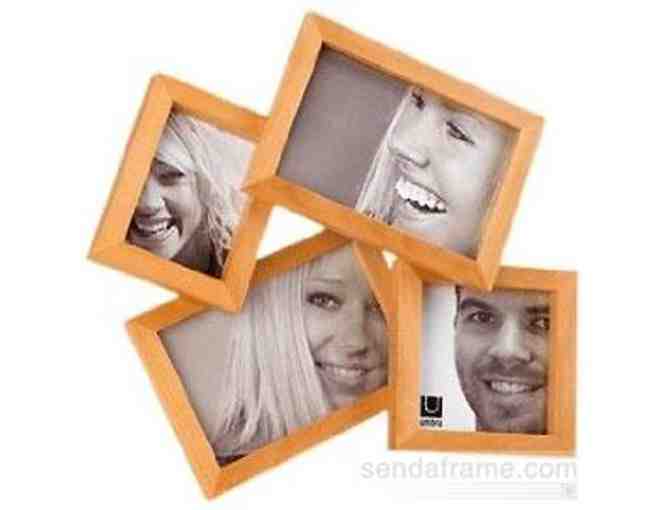 Designed by Sativa Turner, MOSH displays multiple photos in four overlapping frames.  Stained and lacquered natural wood with glare resistant glass lenses.  Holds one 3"x4", one 4"x4" and two 4"x6" photos.  The hidden easel back forms a 3-D floating sculpture look for your tabletop delight.