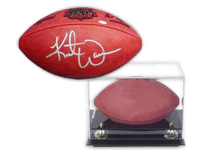 Bids are for a limited edition Kurt Warner hand-signed official football with a deluxe display case. Warner made a name for himself when he led the St. Louis Rams to an NFL Championship in Super Bowl XXXIV. Named the Super Bowl MVP, Warner is a three-time Pro Bowl selection and twice named NFL MVP by the Associated Press. Certificate of Authenticity included.