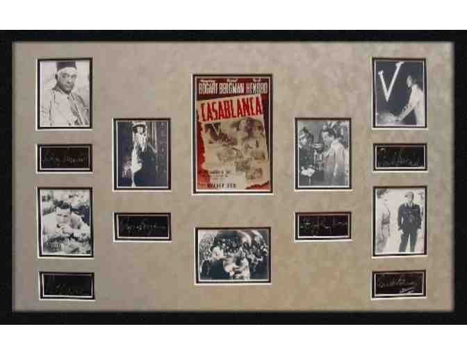 In the 1942 romance motion picture Casablanca, Humphrey Bogart and Ingrid Bergman played their roles of secret lovers with unforeseen complications. In the Moroccan city of Casablanca, Bogart who plays Rick Blaine, must choose between the love of his life, Ilsa Lund (Ingrid Bergman), or "doing the right thing" by helping Ilsa's husband Victor Laszlo lead the resistance against the Nazi Regime. Breathtaking moments of this magnificent film are beautifully captured and professionally double-matted and framed in this amazing limited edition masterpiece collage. Certificate of Authenticity included.