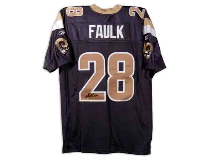 Bids are for a limited edition Marshall Faulk hand-signed official St. Louis Rams game jersey. After being drafted 2nd overall by the Indianapolis Colts in 1994, Faulk joined the Rams in 1999. Earning a Super Bowl ring with the Rams' victory in XXXIV, Faulk is a seven-time Pro Bowl selection. Faulk was also named 2000 NFL MVP by the Associated Press. Certificate of Authenticity included.