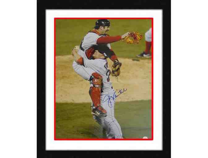 Bids are for a limited edition Jason Varitek hand-signed and framed 16x20 photograph depicting Varitek in the 2004 World Series. A valuable catcher noted for his ability to work well with pitchers, Jason Varitek has the distinction of being the only player to have competed in the Little League World Series, College World Series, Major League Baseball World Series, as well as the Olympic baseball team and the World Baseball Classic. A 2005 Gold Glove winner and two-time All-Star, Varitek is currently captain of the Boston Red Sox. Item comes professional double-matted and framed. Certificate of Authenticity included.