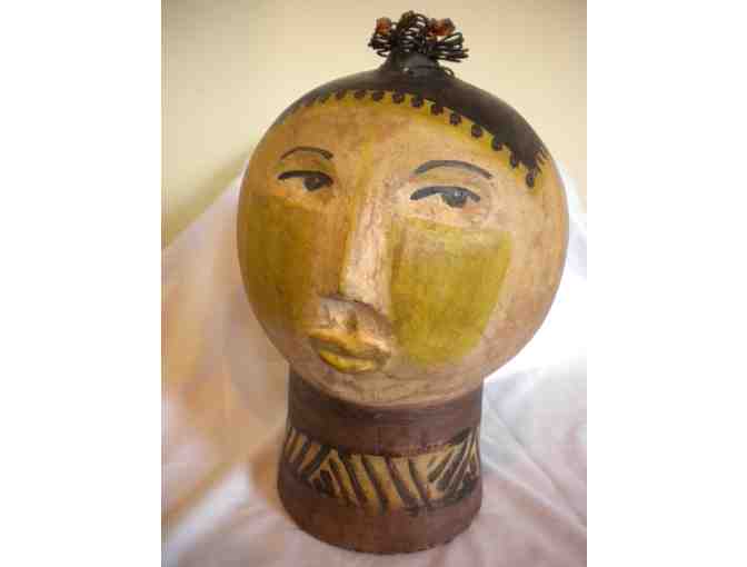 Brought back from a site visit to Brazil by a Grassroots' staffer, this eye-catching handmade sculpture is a great addition to any room. This decorative clay head has a felt bottom, and stands about 11" tall. Very unique!