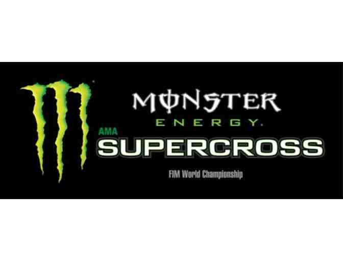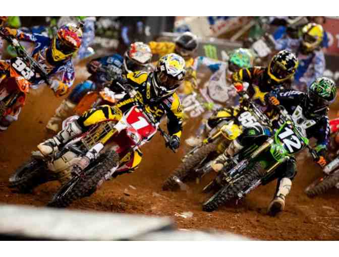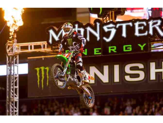 Get down and dirty in the pit of the Monster Energy Supercross show in Anaheim on February 1, 2014. With four field-level tickets to the show and pit passes, this is one extreme event you don't want to miss.