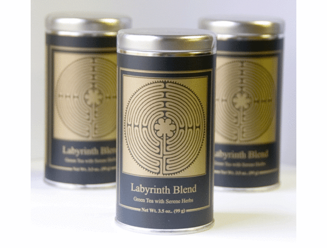 Labyrinth Blend Tea Tin:  The practice of labyrinth walking, like the ancient art of Hindu Ayurvedic medicine and the Japanese tea ceremony, integrates the body with the mind and the mind with the spirit.  This soothing blend contains Japanese sencha green tea, tulsi, saffron, fennel, licorice, star anise, orange peel, peppermint, and lemongrass.