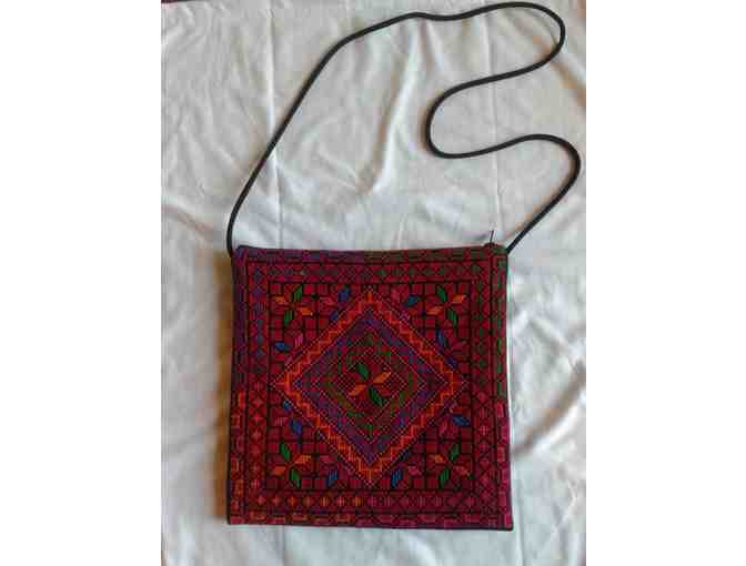 This small, handmade purse from Palestine is a great gift for the holidays or for any occasion! The interior is lined with soft black fabric and a deep zippered pouch. The exterior is beautifully cross-stitched with vibrant colors is a great accessory to any outfit. Don't miss out on this one-of-a-kind item brought back by a Grassroots International staffer from a site visit in the Middle East.
