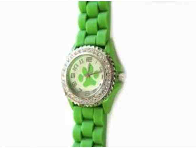 Paw Print Green Silicone Strap Crystal Rim Watch