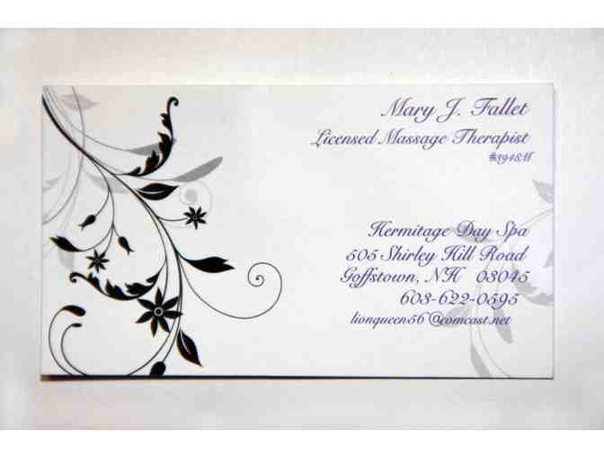 Certificate must be redeemed for a Saturday massage @ Hermitage Day Spa, 505 Shirley Hill Road, Goffstown, NH