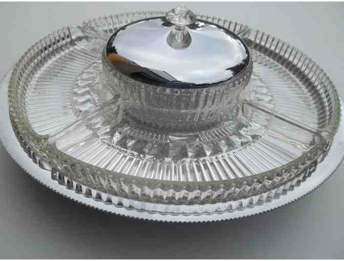 This antipasto tray is a must-have for anyone who likes to host get togethers at home! There are 4 separate glass sections around a glass bowl with a lid and the whole thing is on a lazy-Susan so everyone can reach!