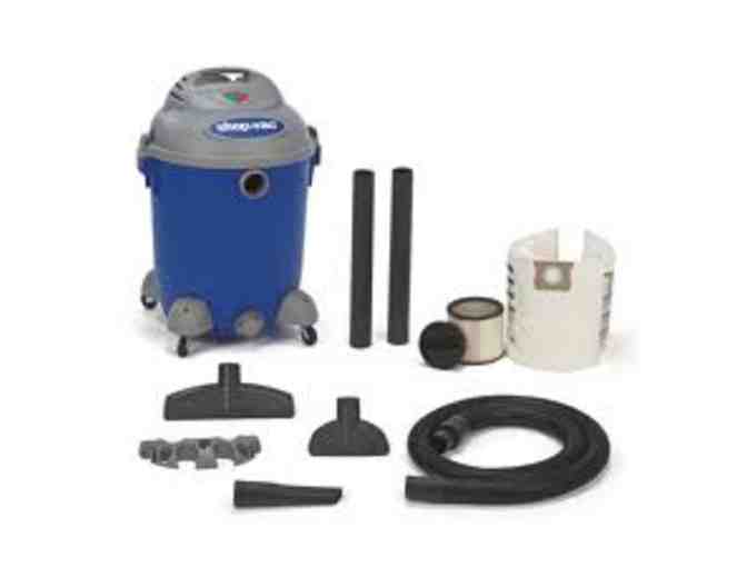 This new, in original packaging, 14 gallon Wet/Dry Vac has the versatility to be used in the home, shop, garage, basement and car. All the power with less noise.