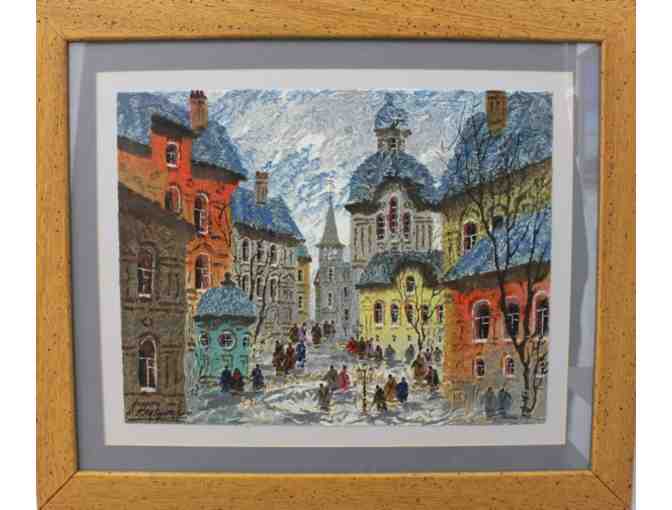 Through his use of exotic textural “prepared” papers, Krasnyansky has extended the potential of watercolor. Old Rostov reveals the artist’s deep experience as a draftsman, his brilliance as an architect and his poetic ability to create a poignant, evocative mood through a facile command of the unforgiving technique of watercolor. Serigraph: 150/350.