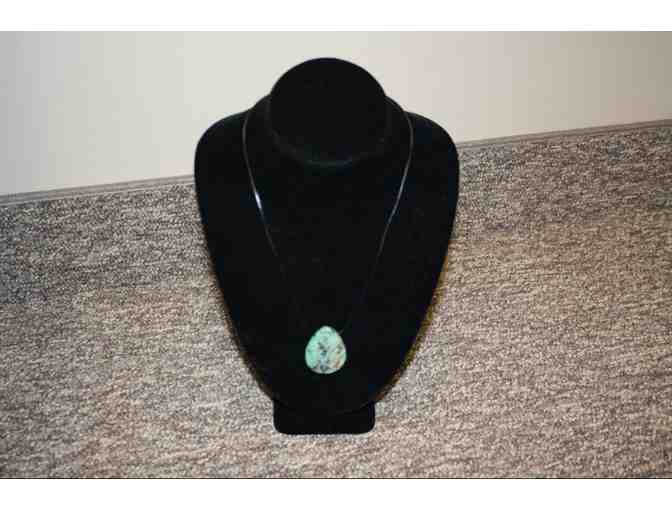 Black leather and large turquoise teardrop pendant necklace