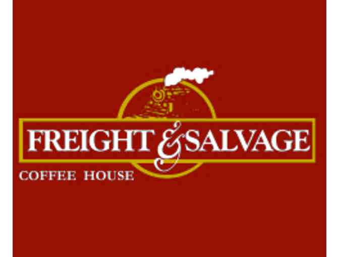 Two tickets good for any Freight & Salvage Coffee House show. The Freight and Salvage Coffee House is a nonprofit arts organization presenting the finest in acoustic traditional and world music over 300 nights a year and offering a wide variety of classes and workshops. "An all-ages venue located in the arts district of Berkeley. We pride ourselves on providing a peak listening experience in a casual, intimate setting."