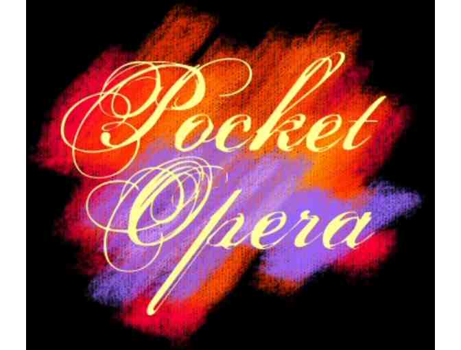 Two tickets to any one performance of Pocket Opera's 2014 season (March-July 2014). Performances include: The Magic Flute, Eugene Onegin, Agrippina, The Pearl Fishers, and The Merry Widow. Performances take place at San Francisco's Legion of Honor or a soon to be announced East Bay location.