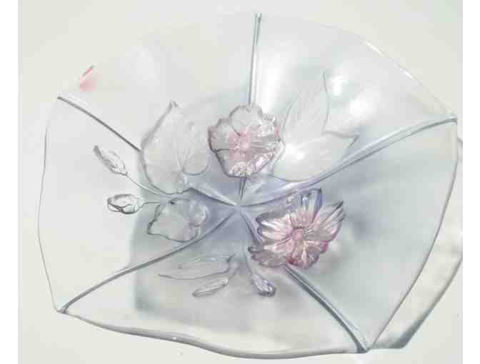 This beautiful bowl is frosted with five sections, 2 pink flowers, with leaves and stems. Would look great sitting on your hutch!