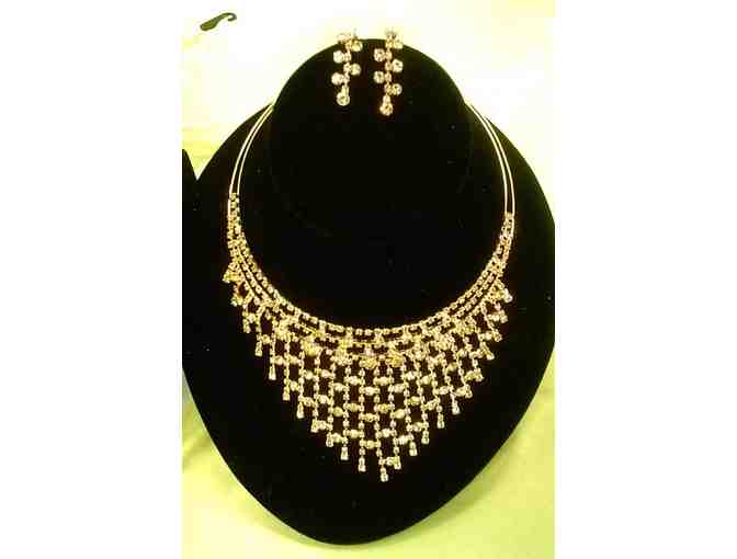 Sparkling Broned Cascading Pyramid Choker w/ Matching Earrings