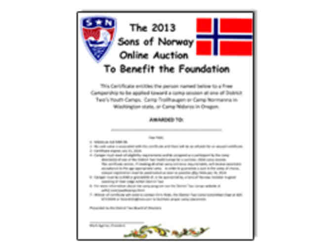 District #2 Campership to Norwegian Heritage Youth Camp